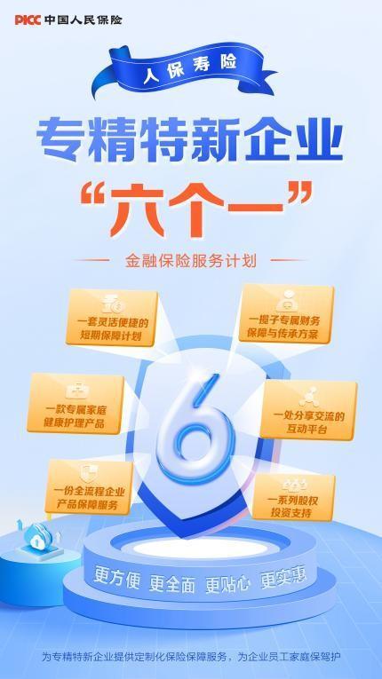 人保寿险深耕“专精特新”领域,从2022年首创高新技术企业团体意外险,到2024年重磅升级——精心打造专精特新企业“六个一”金融保险服务计划,以金融力量浇灌创新未来。