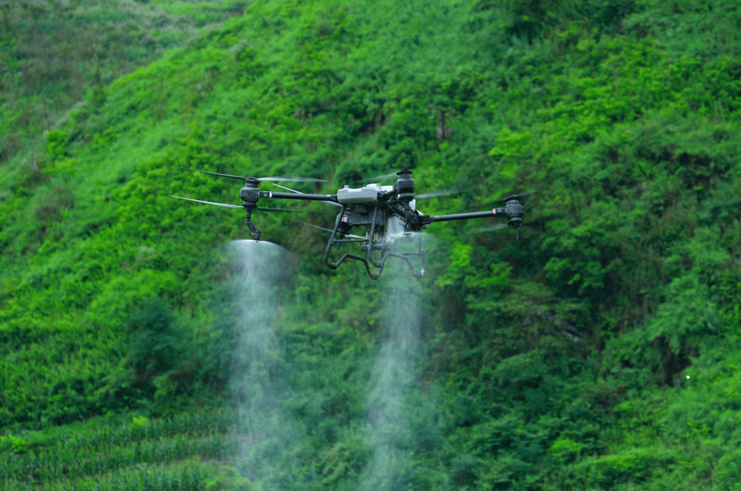 除采收运输外,无人机也成了植保主力。在息烽西山贡米种植区,植保无人机腾空而起,沿预定航线均匀喷洒药剂。“传统人工作业一天不到10亩,无人机一天就能完成400亩。”操作员边更换电池边介绍:“精准、高效,还减少农药浪费。”